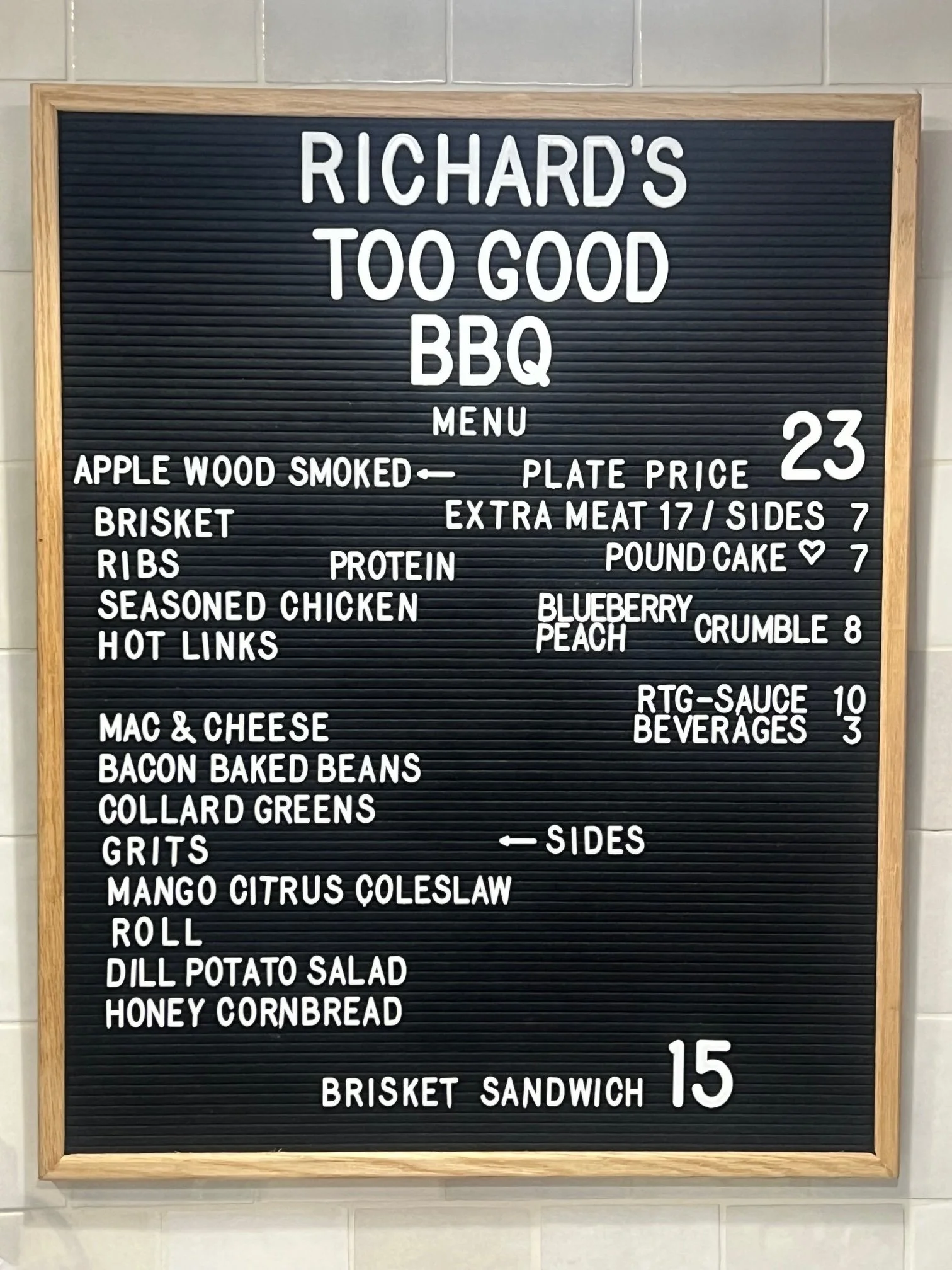 At Richard’s Too Good, we believe food brings people together. Whether you’re a longtime local or just passing through, there’s always room for one more at our table. Stop by, say hello, and taste what makes our barbecue Too Good to miss.